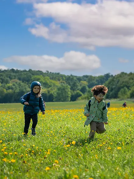 Nestled between a forest and a meadow, our campus surroundings are one of our best teachers. Experiences in the forest are an integral part of our program, giving children the chance to connect deeply with nature and develop a strong sense of place. Through regular, open-ended play in these natural spaces, children build confidence, curiosity, and resilience, which aligns with our school-wide commitment to fostering a lifelong sense of care for the environment and leading sustainably.